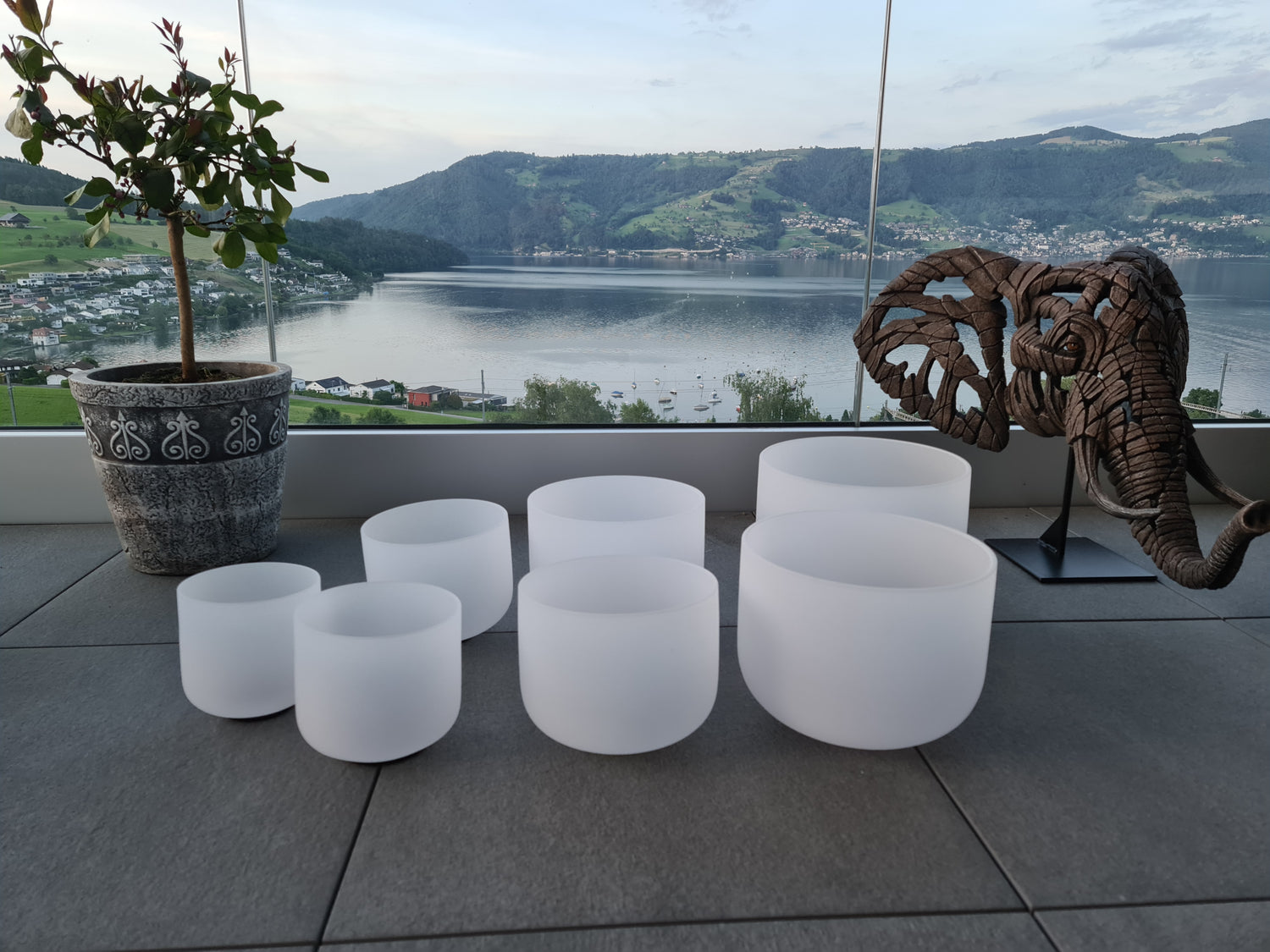 Die sanften Schwingungen der Klangschalen wirken unterstützend, um eine konzentrierte und tiefgehende Meditationspraxis zu ermöglichen.